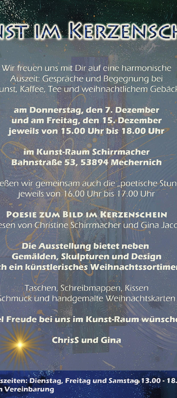 Aktuelle Informationen auch auf: www.atelier-schirrmacher.de